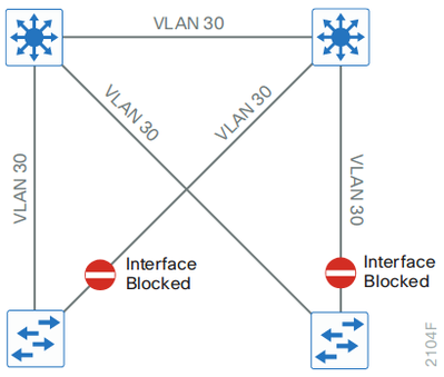 In the traditional network design, the distribution layer has two standalone switches for resiliency. It is recommended that you restrict a Layer 2 virtual LAN (VLAN) to a single wiring closet or access uplink pair in order to reduce or eliminate topology loops that STP must block and that are a common point of failure in LANs. Restricting a VLAN to a single switch provides a loop-free design, but it does limit network flexibility.